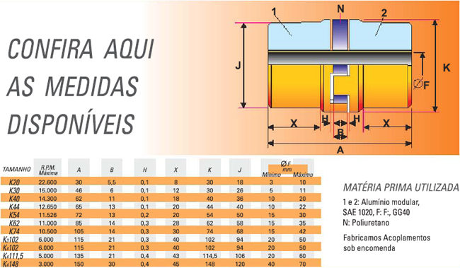 É um Acoplamento elástico super aprovado, pois com as características do elemento em Poliuretano (que possui excepcional resistência mecânica à abrasão , e a impactos) Transcende as expectativas técnicas, pois possui baixo coeficiente de atrito.